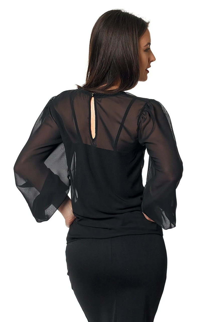 Стильная блуза Ксения выполнена из однотонного шифона. Рукав и подол блузы на резинке, что позволяет самостоятельно делать нужную длину. Горловина круглая, спереди сборкой, сзади вырез, застёгивается на пуговичку. Блуза украшена красивой вышитой объемной розой, что придаёт изделию особой изысканности и шарма. Такая блуза отлично подойдёт не только под любой деловой костюм, но и к любимой юбке или джинсам, что делает её универсальной и незаменимой вещью Вашего гардероба.