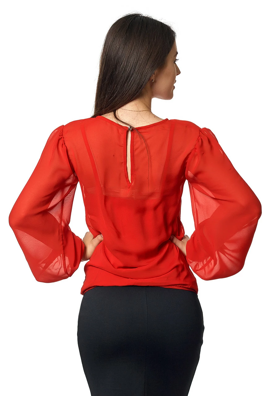 Стильная блуза Ксения выполнена из однотонного шифона. Рукав и