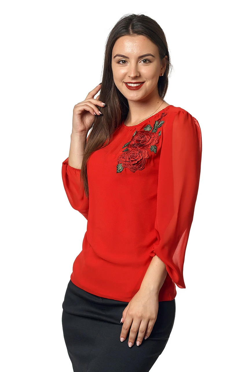 застёгивается на пуговичку. Блуза украшена красивой вышитой