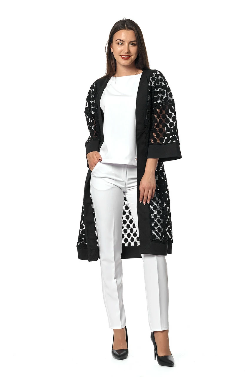 Модный кардиган-кимоно Элизабет выполнен из тонкого кружева в