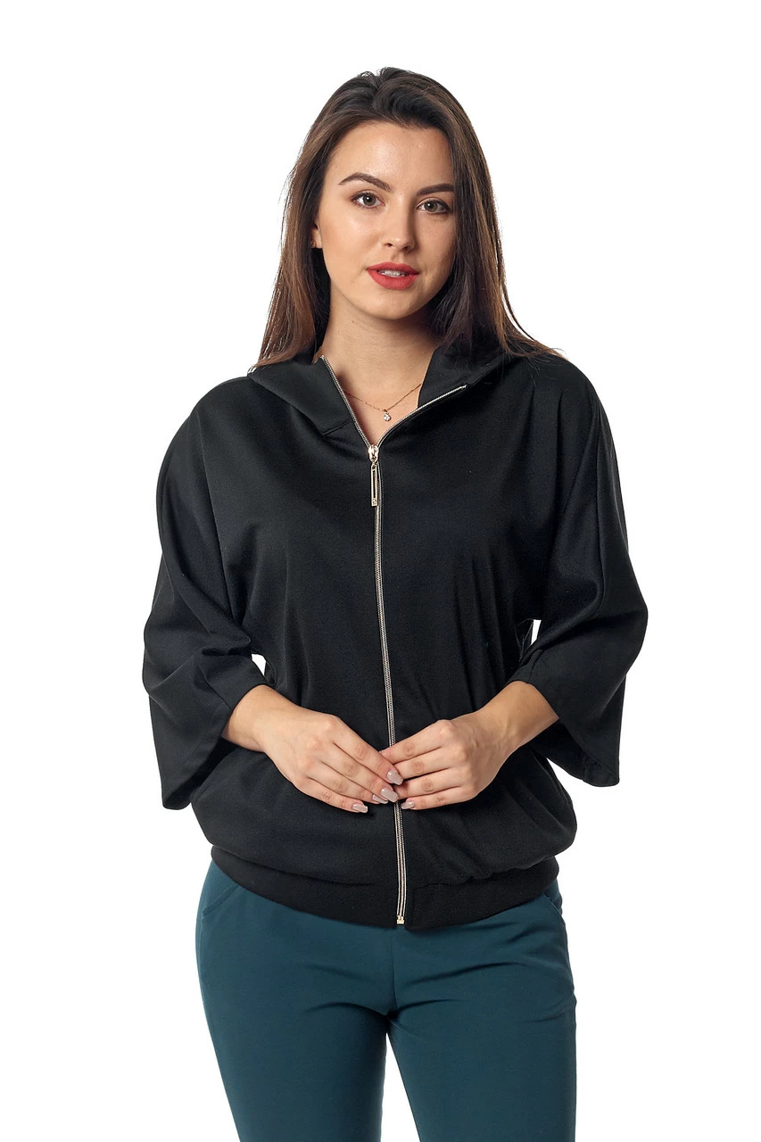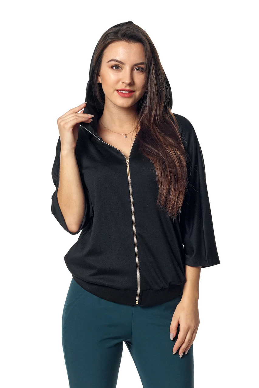 Стильный женский бомбер Элла выполнен из трикотажа лакоста высокого качества. Слегка укороченный, с расширенным рукавом длинной 3/4, с капюшоном. Застегивается на золотистую молнию. Такая вещь станет отличным дополнением к Вашему повседневному гардеробу. Благодаря оригинальному фасону, бомбер можно использовать не только в спортивном, но и в классическом образе, комбинируя его с платьями и юбками, туфлями на каблуке.
