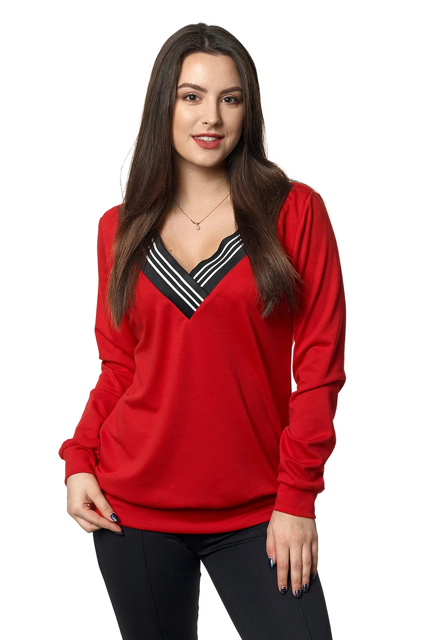 Модная женская кофта выполнена из ткани трикотаж Lacosta. Кофта с V – вырезом, декором служит широкая резинка в полоску, рукава на манжетах. Кофту можно сочетать с лосинами, джинсами, юбкой. Свободный покрой кофты идеально скроет недостатки, или наоборот подчеркнет достоинства.