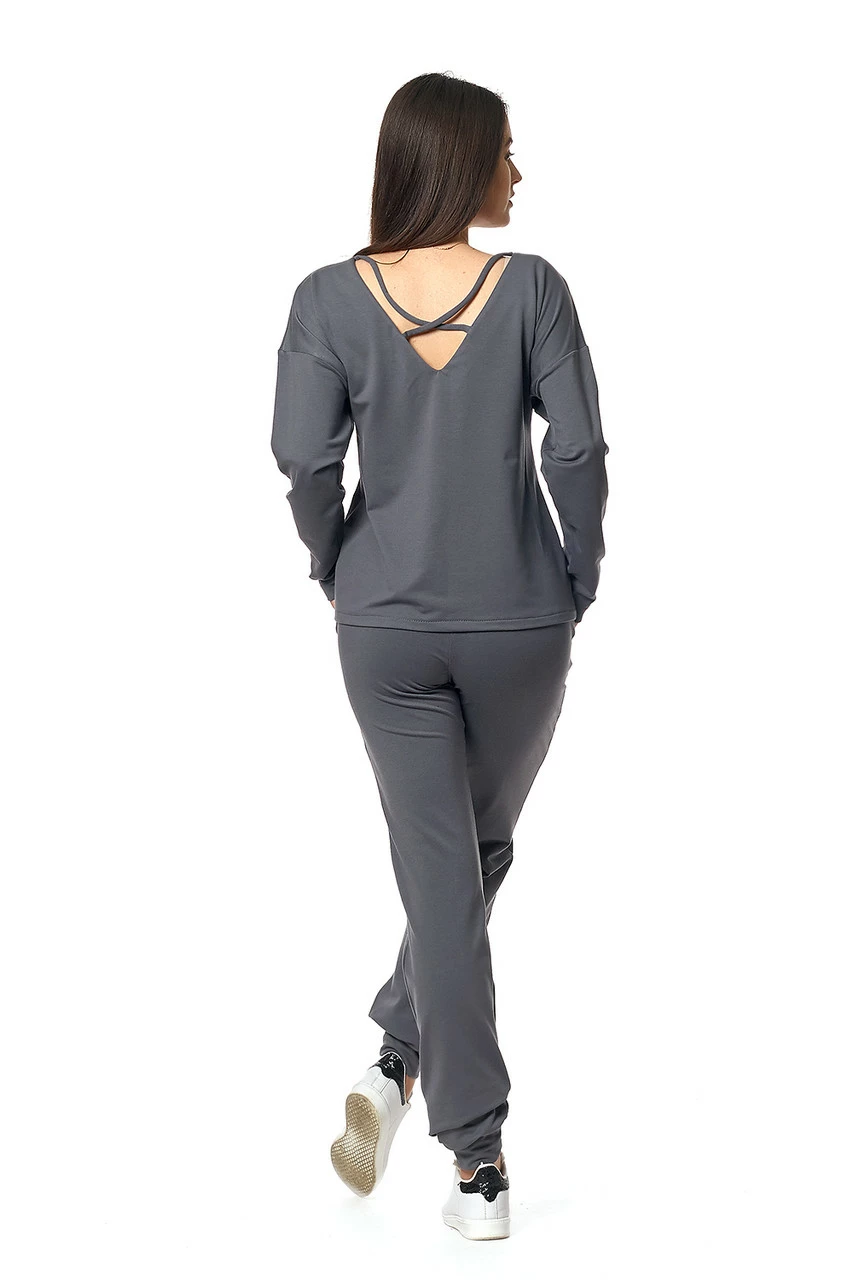 Модный женский костюм Брюссель выполнен из натуральной трикотажной ткани – двунитка, состоит из кофты и брюк. Кофта свободного покроя, с длинным рукавом, украшена принтом из золотистых пайеток в виде совы. V-образный вырез на спинке оформлен шнуровкой, пришитой накрест. Брюки в спортивном стиле, со средней посадкой, пояс на резинке, по бокам карманы, на щиколотках широкие манжеты на резинке. Такой костюм прекрасно садится по любой фигуре, не стесняет движений, и позволяет визуально скорректировать проблемные зоны. Кофточка двусторонняя – ее можно одевать наперед принтом или вырезом, что позволяет комбинировать её не только с брюками от костюма, но и с другими вещами Вашего гардероба – джинсами, лосинами или юбками в спортивном стиле, каждый день создавая новые интересные образы.