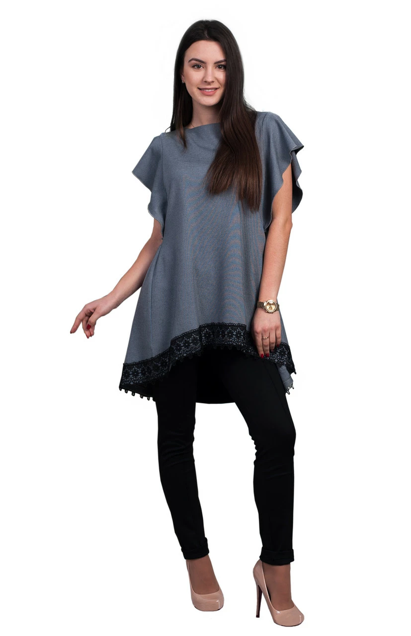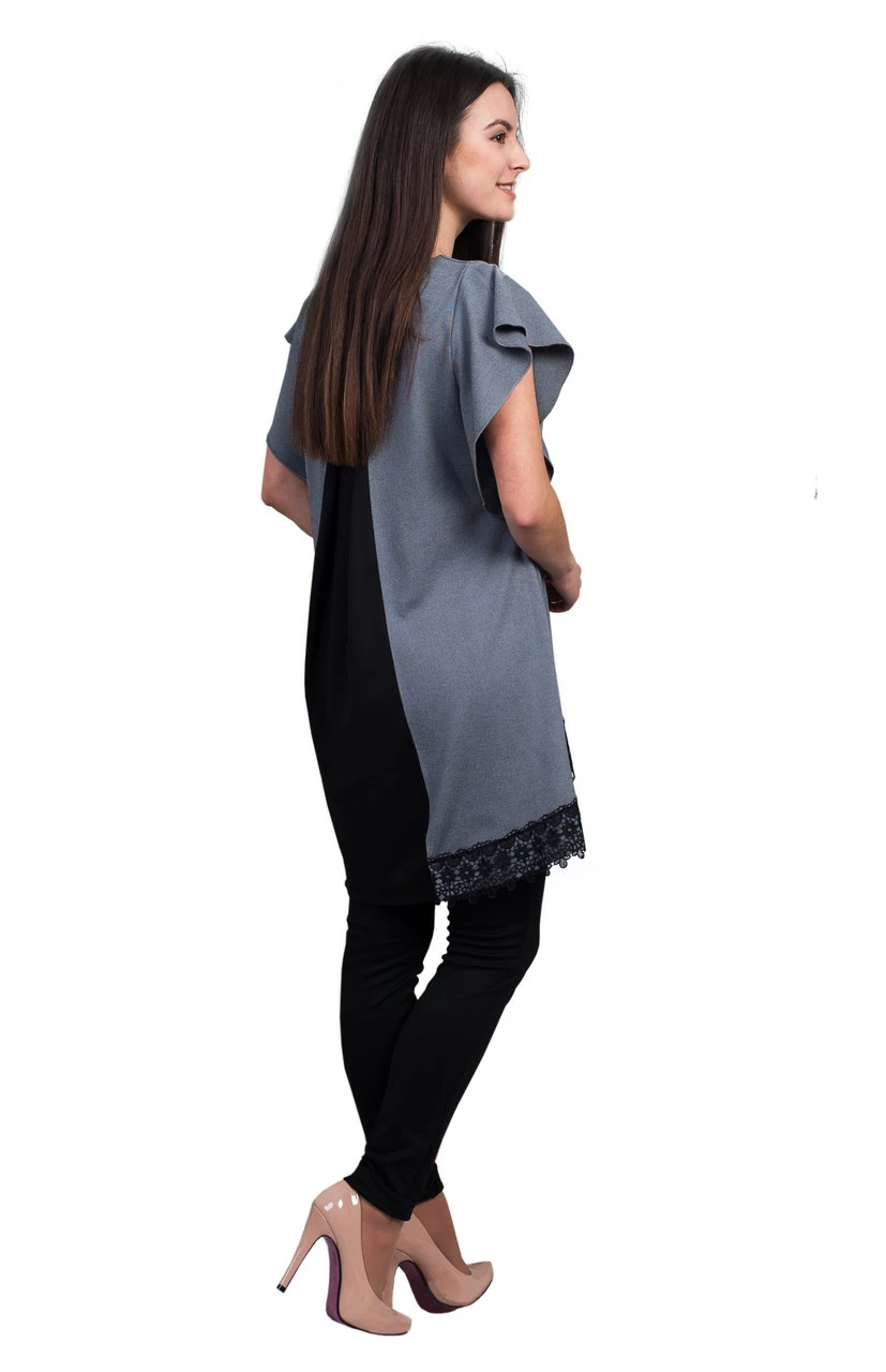 Стильный модный комплект Эльза выполнен из высококачественного французского трикотажа. Состоит из оригинальной туники и укороченных чёрных лосин со стрелками. Туника с контрастной вставкой на спинке и короткими рукавчиками-воланами, низ ассиметричный декорирован изящным кружевом. Такое дизайнерское решение отлично скроет недостатки фигуры и придаст образу модную изюминку. Этот нарядный комплект отлично подойдёт для праздников и выходов в свет.
