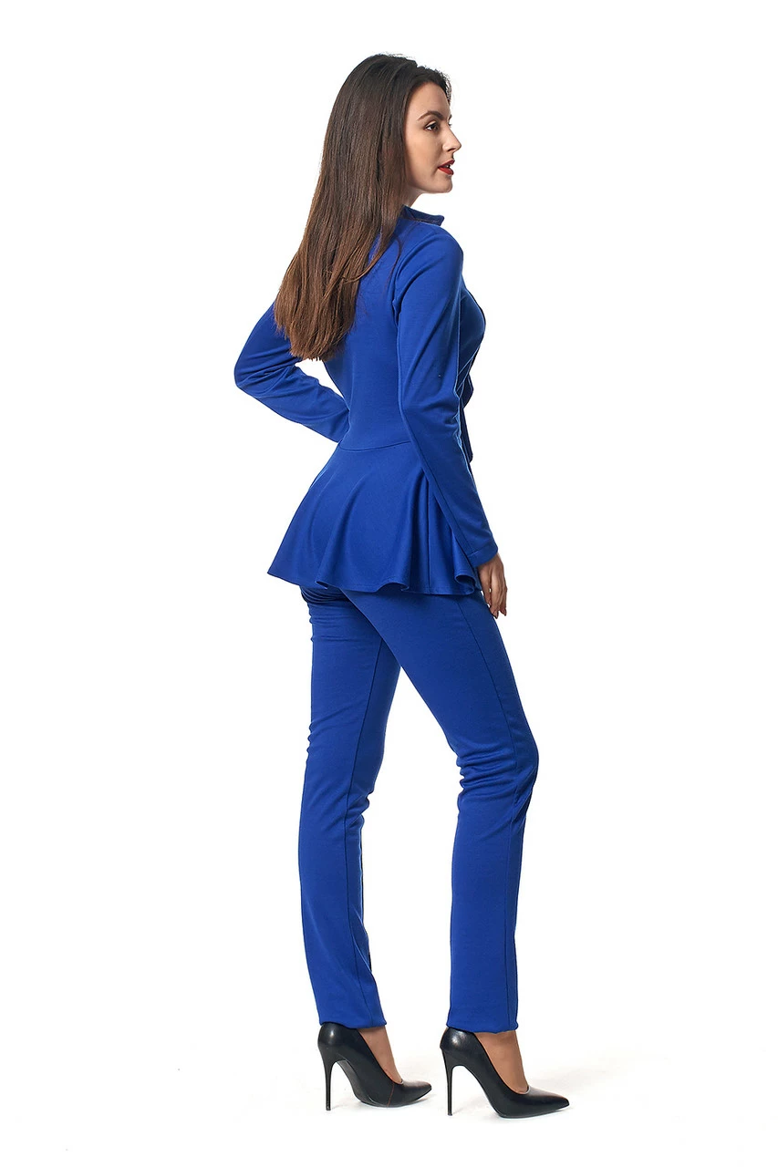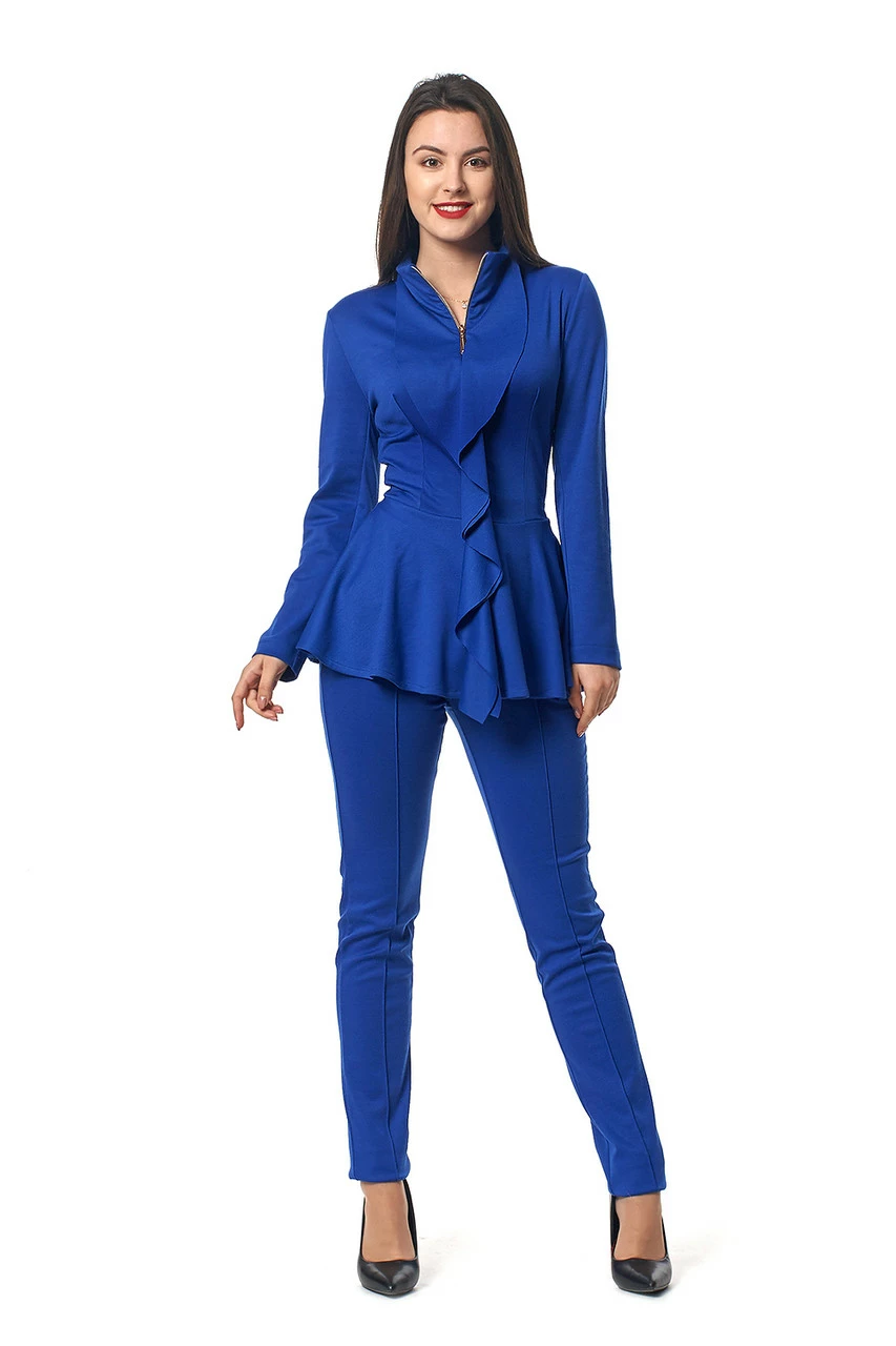 Стильный женский костюм Мейди состоит из жакета и брюк, выполнен из трикотажа Lacosta высокого качества. Пиджак слегка удлиненный с баской и длинным рукавом, застегивается на молнию. Брюки зауженные, с идеально отутюженными стрелками. Костюм отлично смотрится на любой фигуре, специальный крой скрывает недостатки и удачно подчеркивает достоинства. Такой костюм должен быть в гардеробе каждой женщины, Вы будите выглядеть очень женственно и модно. Подойдет не только на каждый день, но и для разных мероприятий.