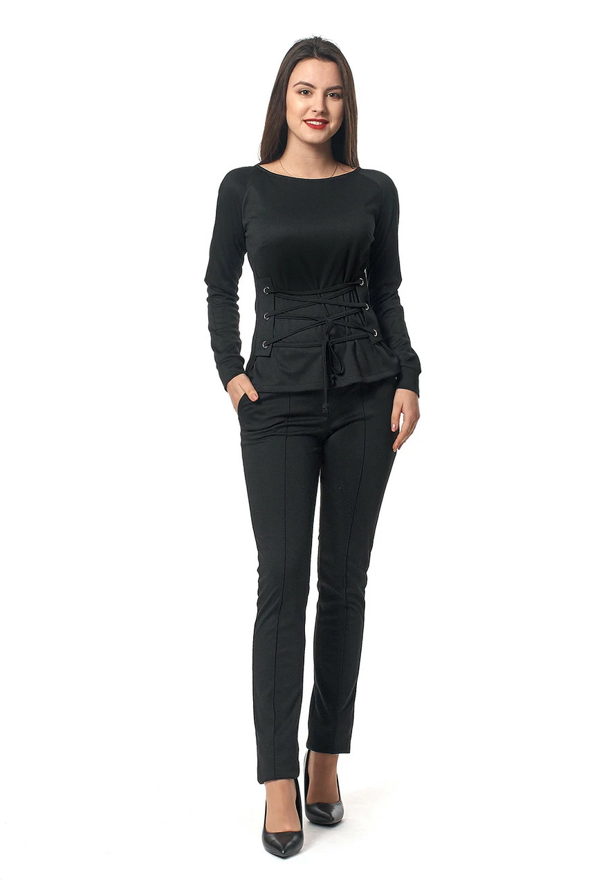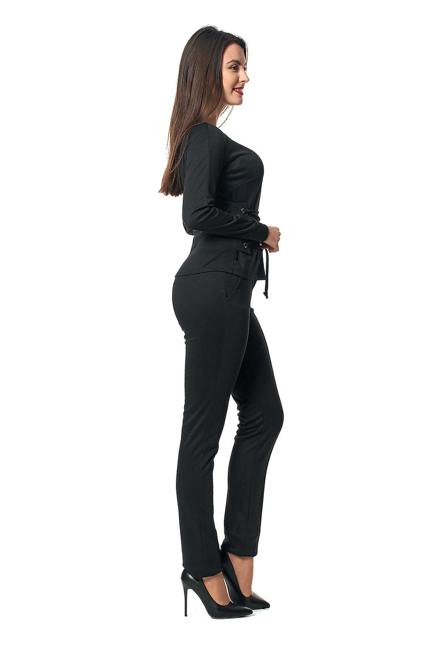 Модный женский костюм Наоми выполнен из ткани трикотаж Lacosta высокого качества. Костюм состоит из кофты и брюк. Кофта с длинным рукавом, вырез лодочка, оригинальности придает стильная шнуровка. Брюки зауженные, с идеально отутюженными стрелками. Такой костюм визуально моделирует фигуру, скрывает недостатки или же подчеркивает достоинства. В нем Вы будите себя чувствовать уверенно, комфортно и стильно.