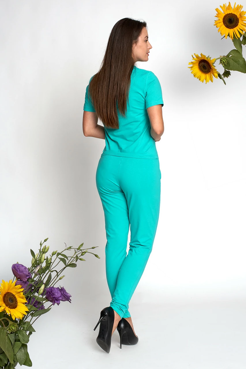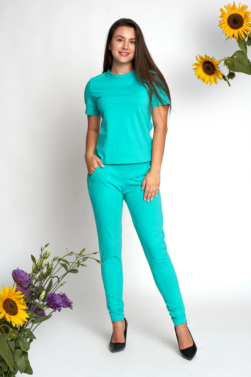 Женский костюм Шейла выполнен из ткани двунитка высокого качества. Костюм состоит из футболки и брюк. Брюки зауженные, по бокам карманчики, пояс на резинке. Такой костюм должен быть в гардеробе каждой модницы. Он очень удобный и практичный, подойдет на все случаи жизни.