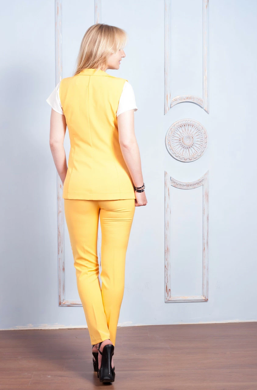 Модный костюм Сиэтл выполненный из легкой итальянской костюмной ткани. Состоит из жилета и укороченных брюк с высокой посадкой. Жилет приталенный, с глубоким V-образным вырезом, застегивается на три пуговицы. Костюм красиво лежит по фигуре, подчёркивает красоту зоны декольте, тонкую талию и округлую линию бедер.