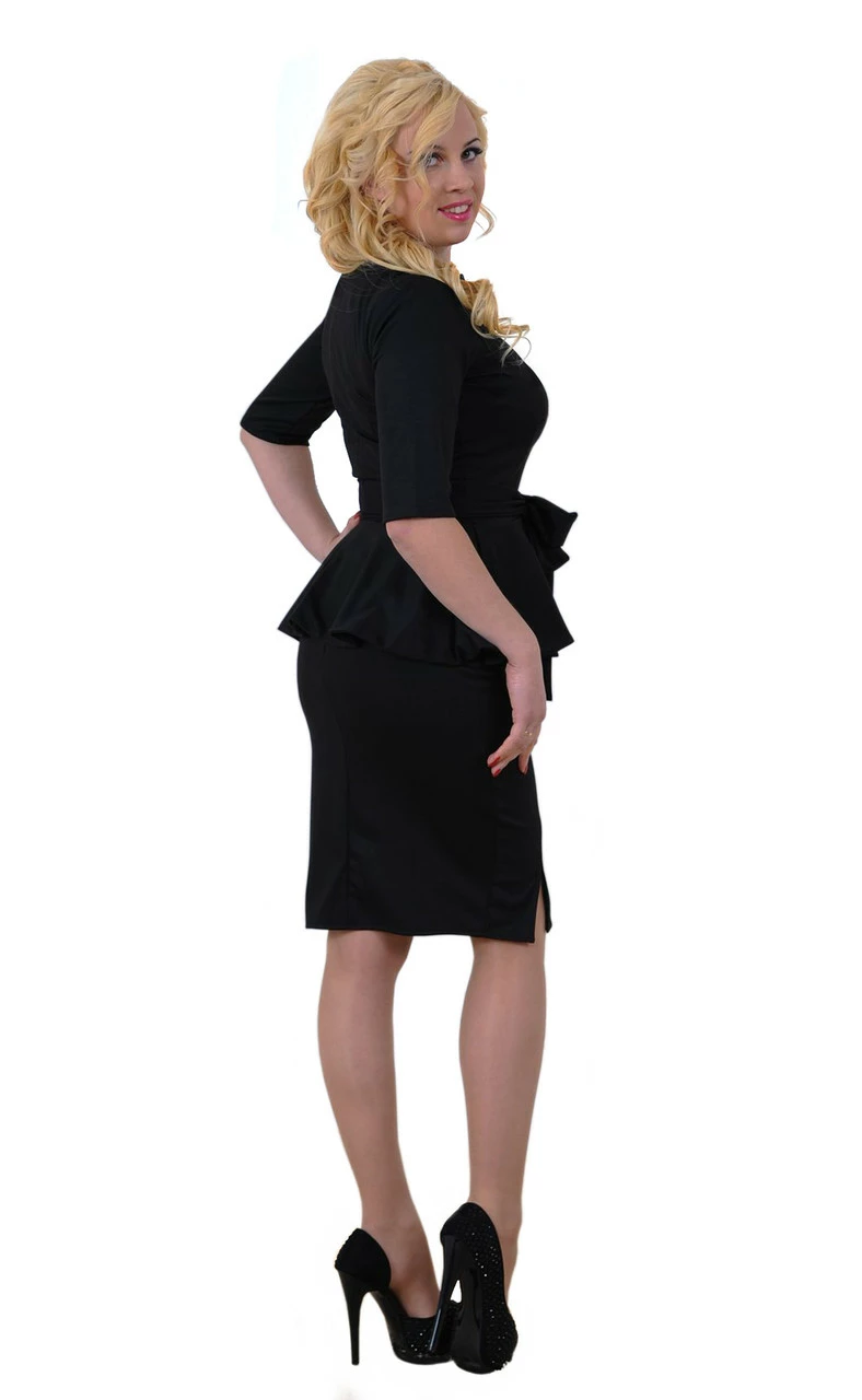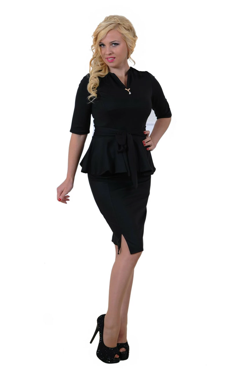 Костюм Сюзанна выполнен из однотонного трикотажа лакоста. Состав: блуза, юбка-карандаш, пояс. Блуза декорирована украшением под золото, на юбке небольшой разрез. Роскошная блуза с баской эффектно смотрится в сочетании с классической  юбкой-карандаш . Этот ансамбль как нельзя лучше подчеркнет женственность силуэта, сделав его зрительно стройнее и придав ему Х-образную форму. С помощью баски костюм выгодно подчеркнёт достоинства вашей фигуры, и скроет недостатки. Такой наряд застанет ваших завистниц врасплох.