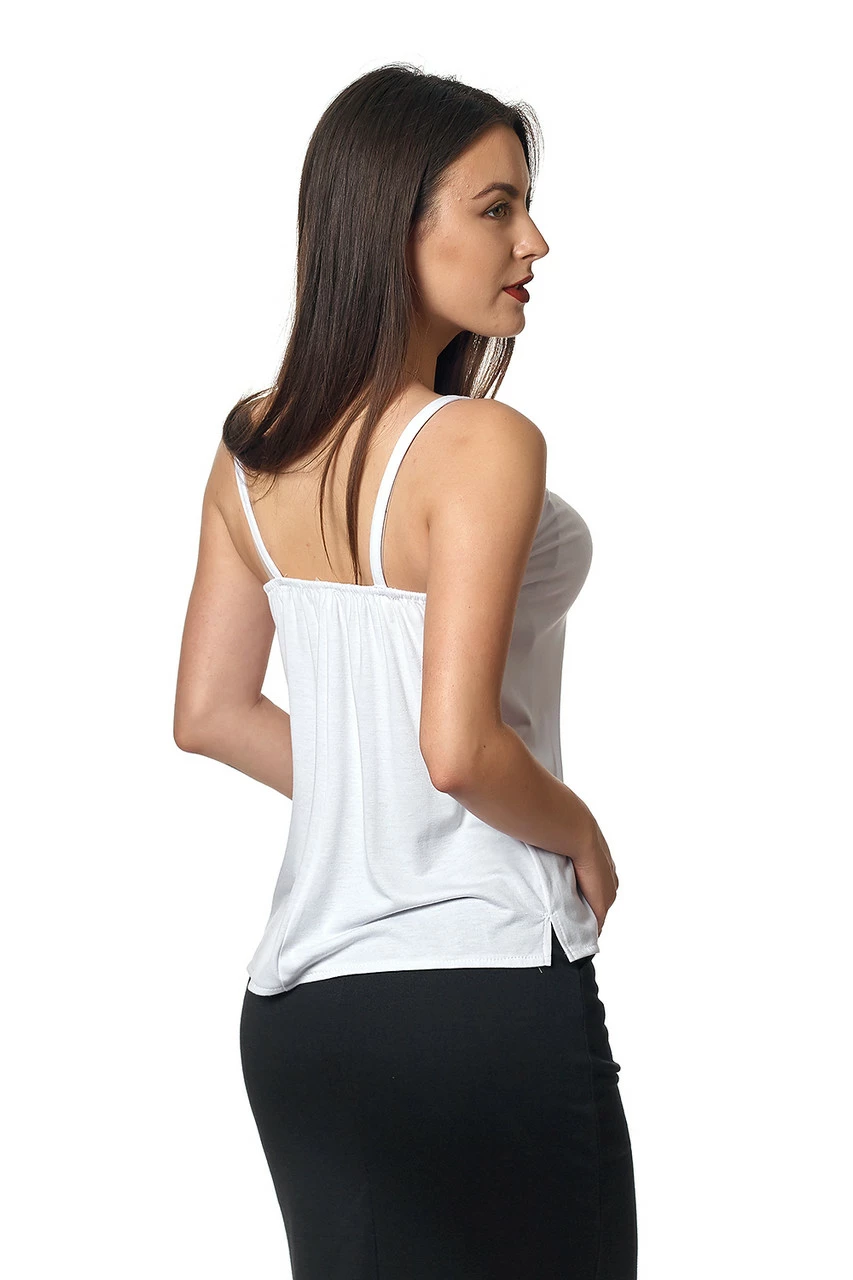 Летняя майка Энни выполнена из высококачественного трикотажа лакоста. Майка на тонких бретелях, вырез спинки на резинке. Спереди декорирована полоской из гипюра, пришитой по центру изделия. Хорошо смотрится с любым низом – шортами, юбками, брюками или джинсами.