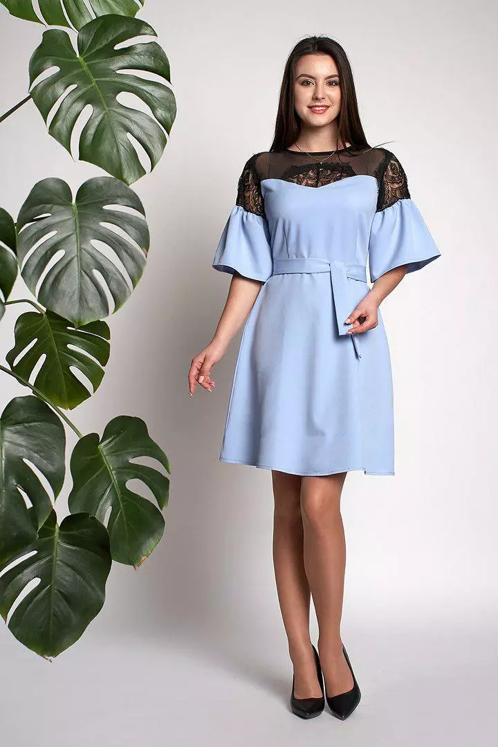 Модное женское платье Афина выполнено из ткани креп-костюмка высокого качества. Платье длинной до колен, рукава расклешенной формы красивыми воланами. Изюминку платью придает красивая гипюровая вставка. Линию талии подчеркивает пояс, который входит в комплект. Превосходный вариант для женщин, которые стремятся выглядеть стильно в любой ситуации. Платье можно одевать как и на работу, так и для вечернего выхода в свет и официальных торжеств.