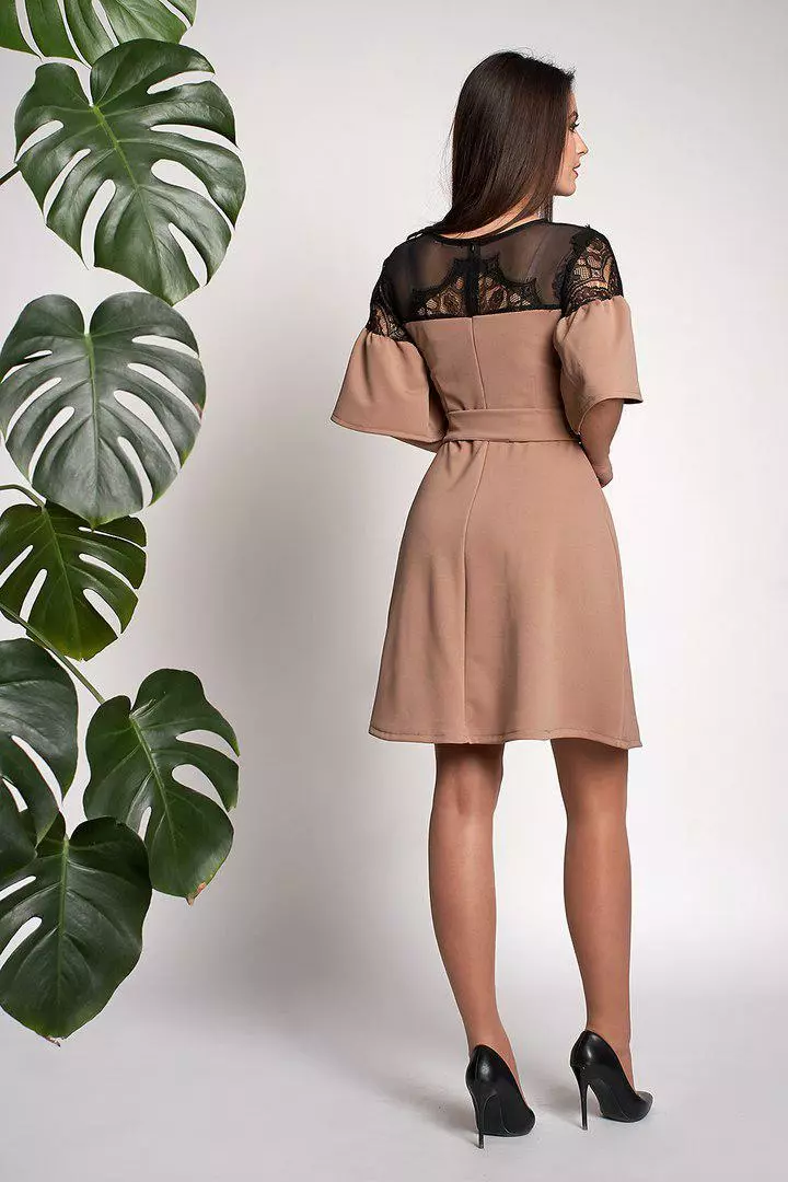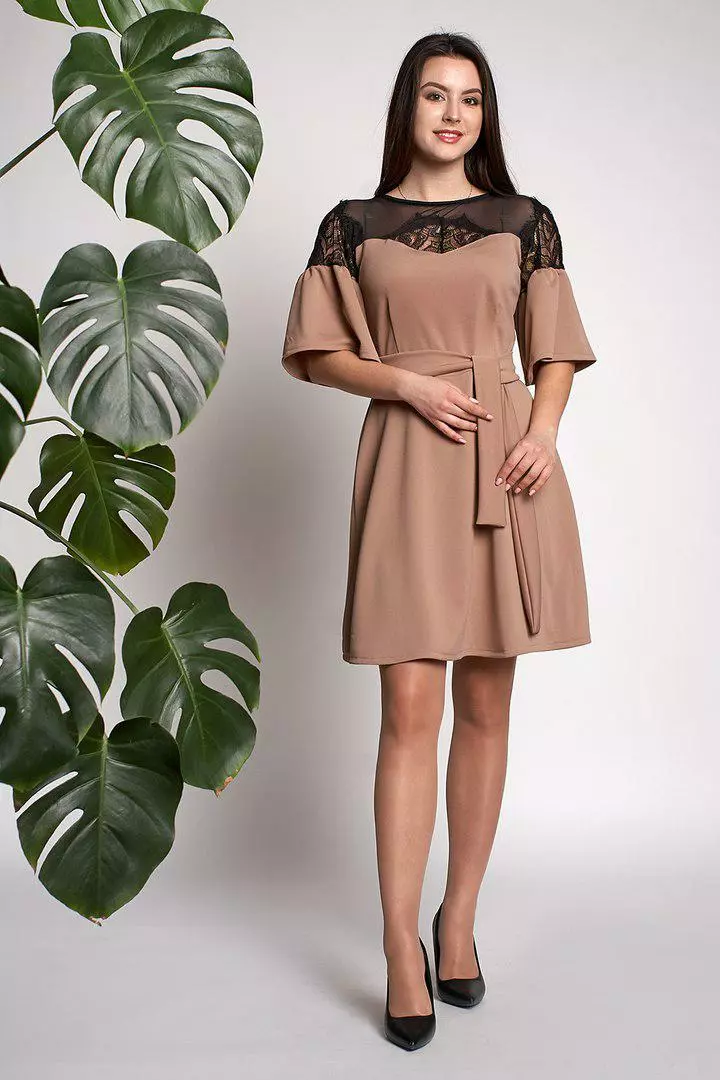 Модное женское платье Афина Лайт выполнено из ткани кукуруза высокого качества. Платье длинной до колен, рукава расклешенной формы  красивыми воланами. Изюминку платью придает красивая гипюровая вставка.  Линию талии подчеркивает пояс, который входит в комплект. Превосходный вариант для женщин, которые стремятся выглядеть стильно в любой ситуации. Платье можно одевать как и на работу, так и для вечернего выхода в свет и официальных торжеств.