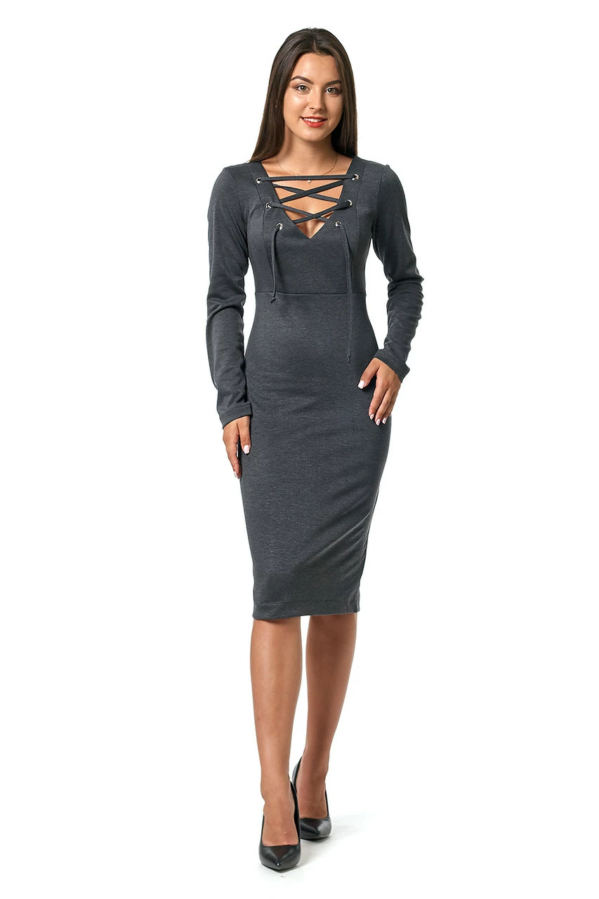 качества. Платье-миди, с длинным рукавом. Украшением служит