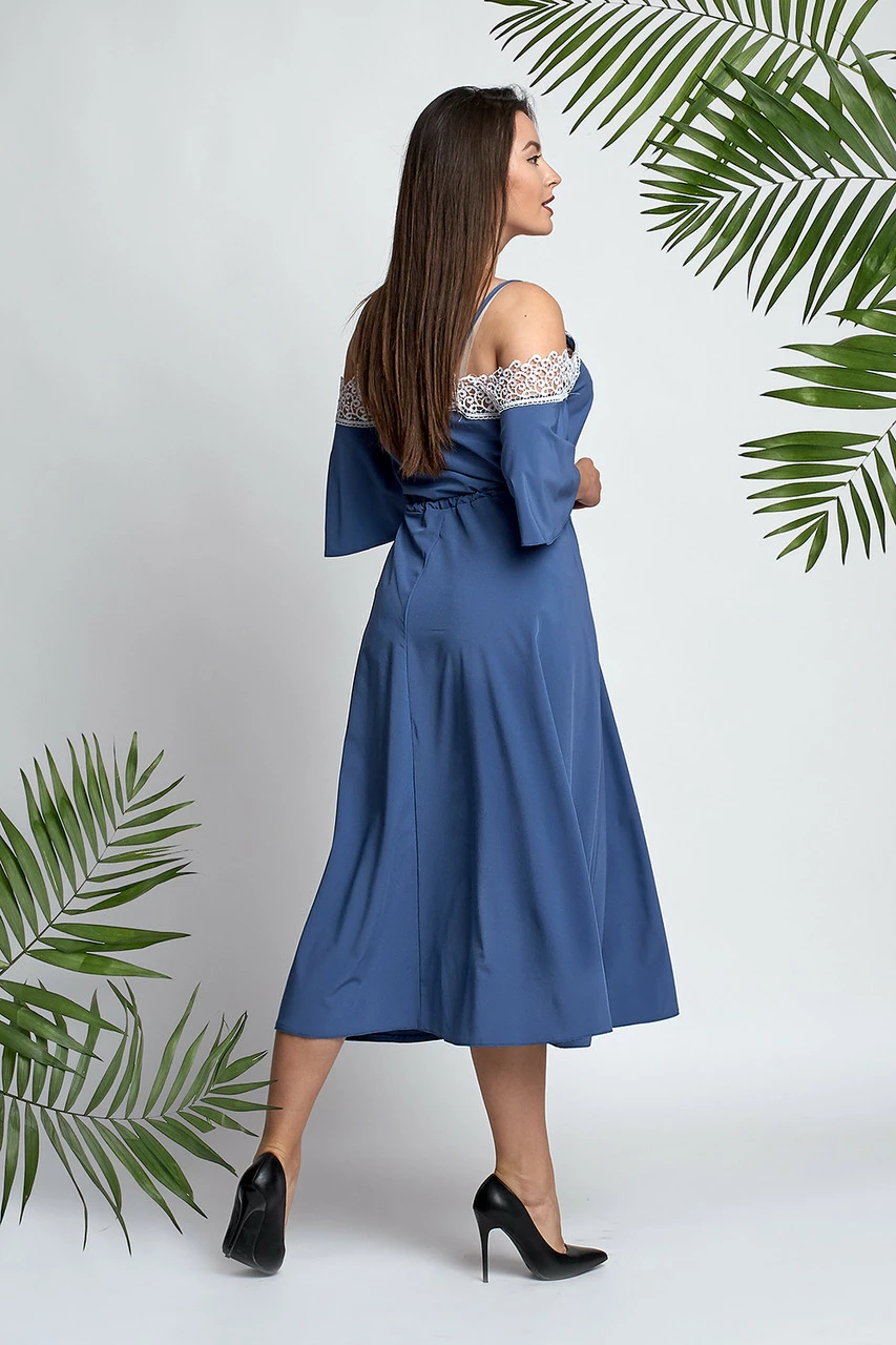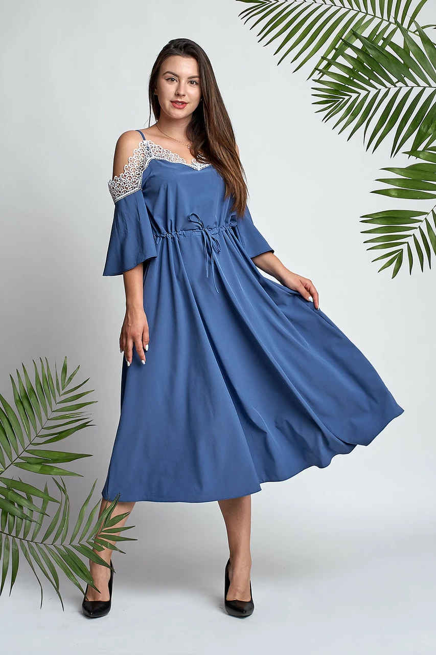 Женское платье Анабель выполнено из ткани софт высокого качества. Платье длиной ниже колена, на тонких бретелях с рукавчиком украшено красивым кружевом. Эта модель платья хорошо скрывает недостатки фигуры, подчеркивает достоинства. Платье можно сочетать с разной обувью, красиво смотрится с туфлями лодочками или балетками.
