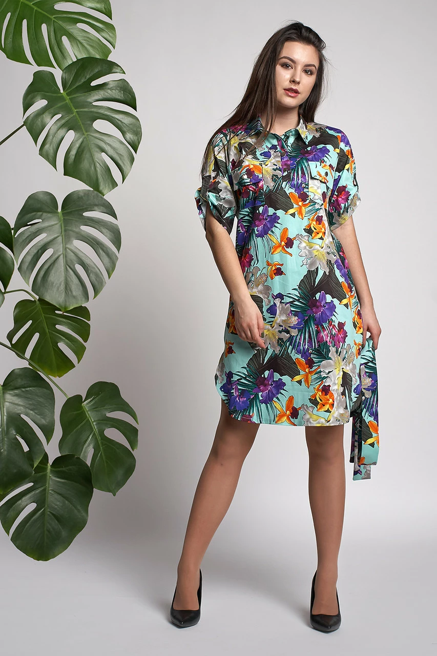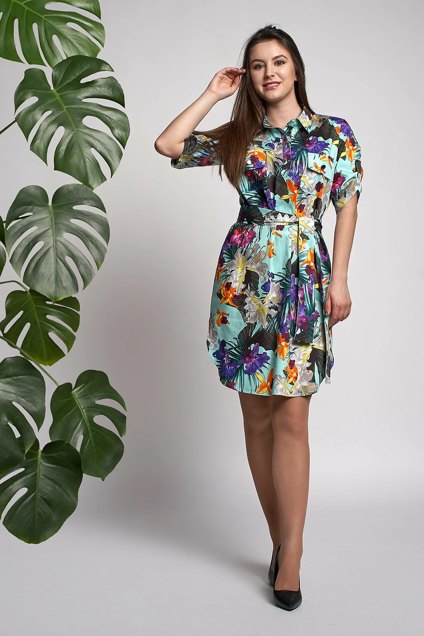 Платье-рубашка Беатрис выполнено из ткани коттон высокого качества. Платье-рубашка с коротким рукавом, воротником на пуговичках, длинной выше колена. Можно носить с поясом  который входит в комплект. Такая вещь станет незаменимой в вашем гардеробе, в нем Вы будете себя чувствовать легко, удобно и модно.