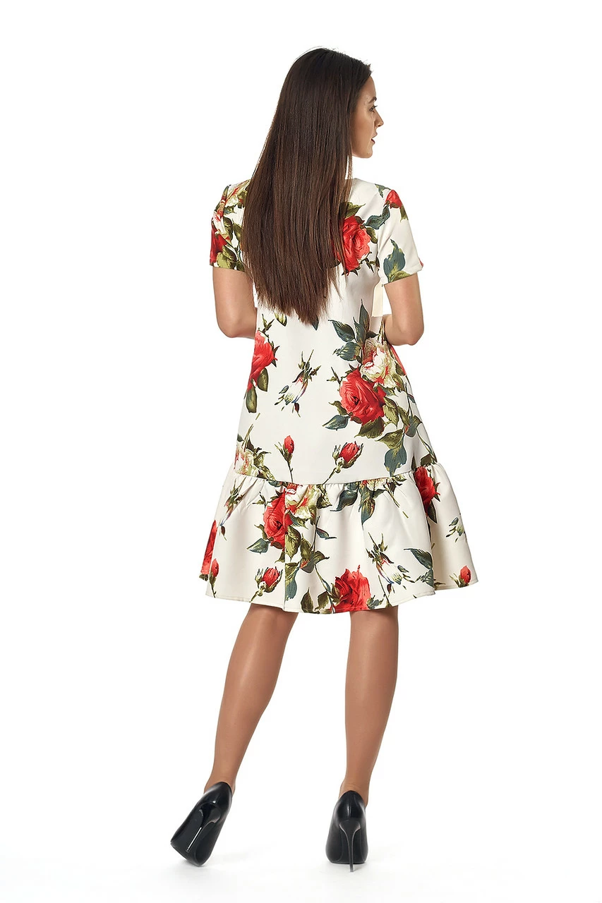 высокого качества. Платье с круглым вырезом, коротким рукавом, без