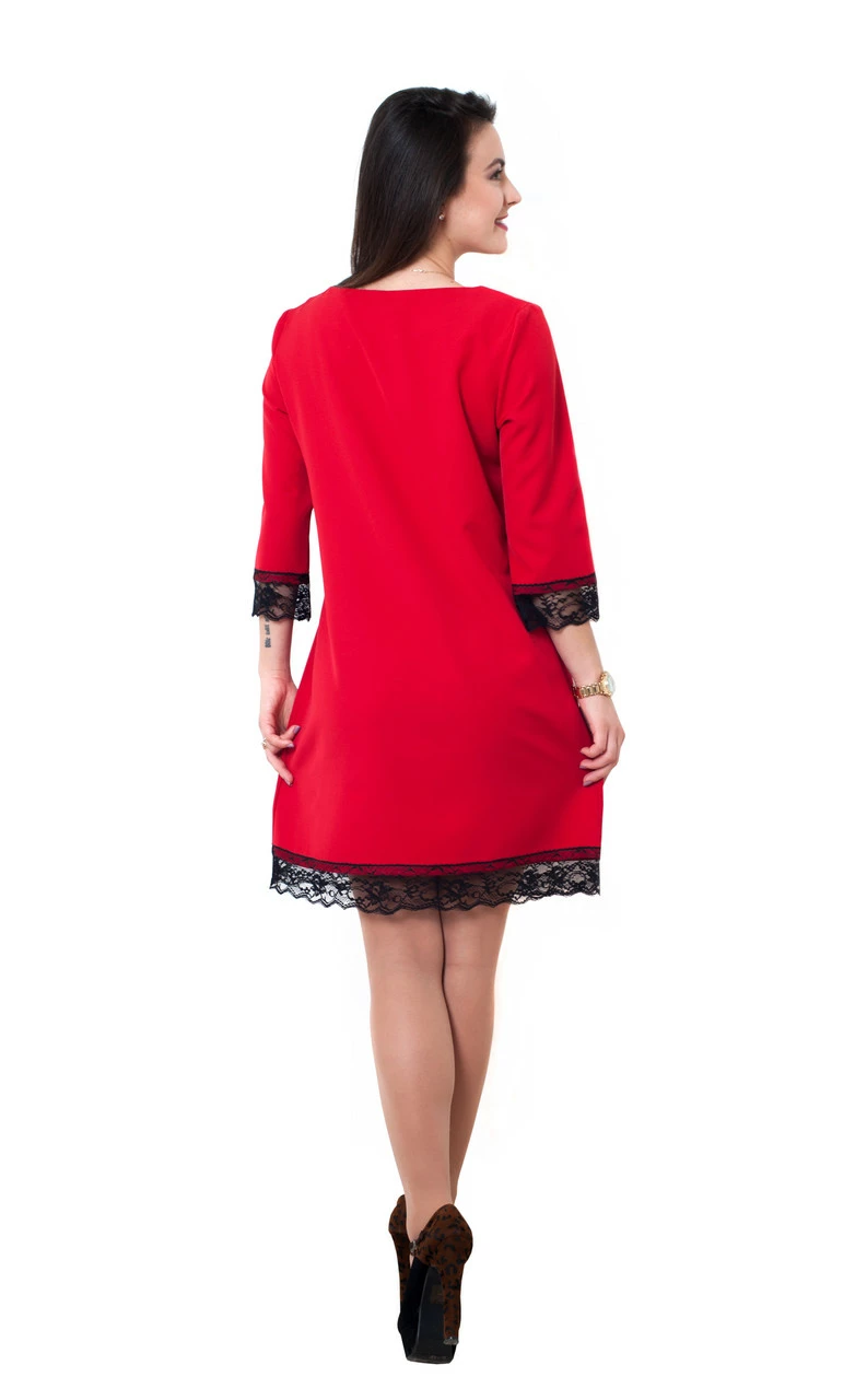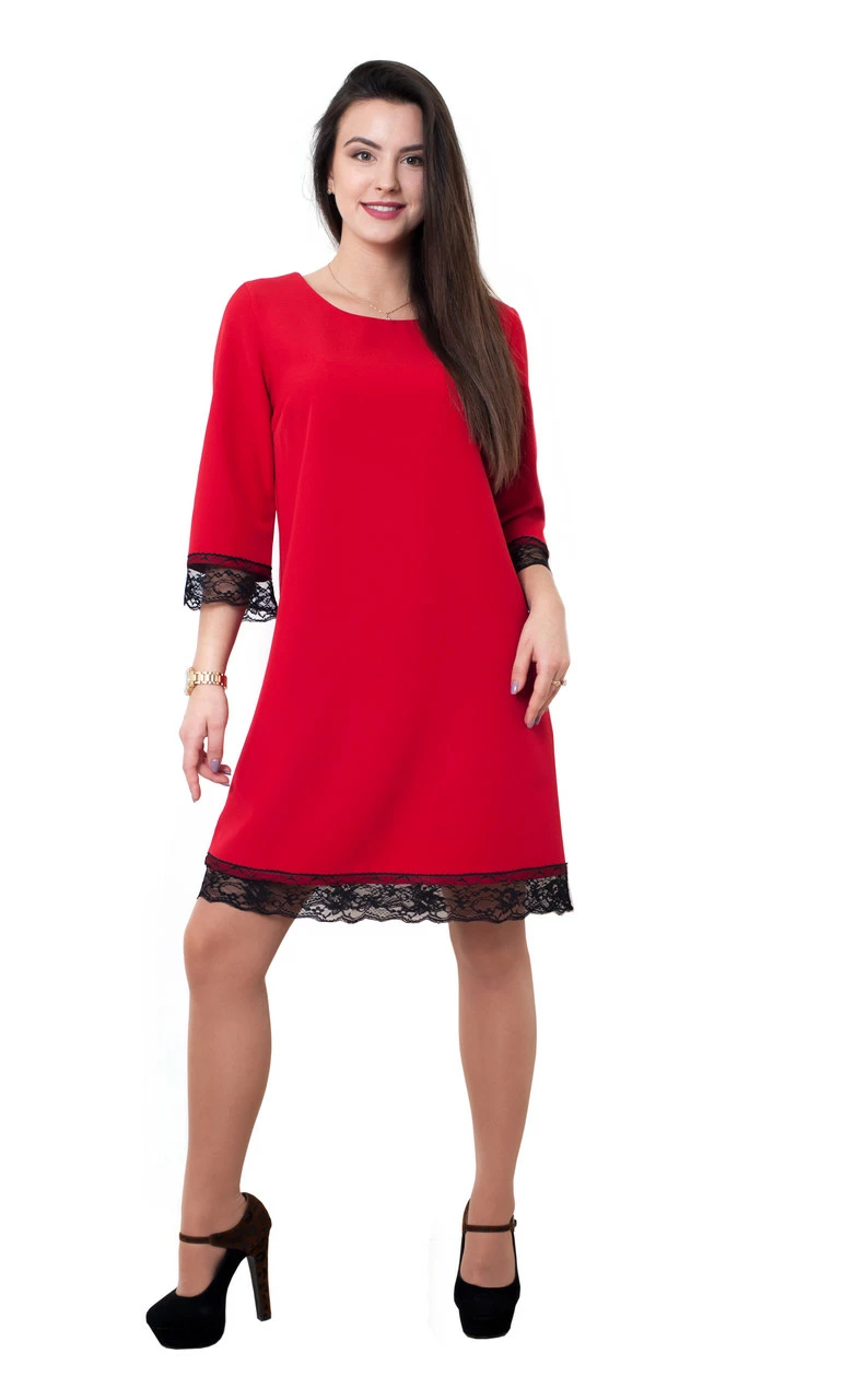 Женственное платье Дакота выполнено из легкой костюмной ткани. Платье трапециевидного покроя, рукав ¾, с круглым вырезом, без застёжки. Подол и манжеты платья украшены изящным кружевом, что придаёт изделию роскоши и шарма. Длина платья выше колена удачно подчеркнёт красоту женских ножек, а свободный фасон отлично скроет все недостатки фигуры. Такой наряд заставит окружающих смотреть на Вас с восхищением.