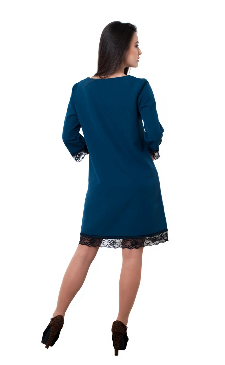 Женственное платье Дакота выполнено из легкой костюмной ткани. Платье трапециевидного покроя, рукав ¾, с круглым вырезом, без застёжки. Подол и манжеты платья украшены изящным кружевом, что придаёт изделию роскоши и шарма. Длина платья выше колена удачно подчеркнёт красоту женских ножек, а свободный фасон отлично скроет все недостатки фигуры. Такой наряд заставит окружающих смотреть на Вас с восхищением.