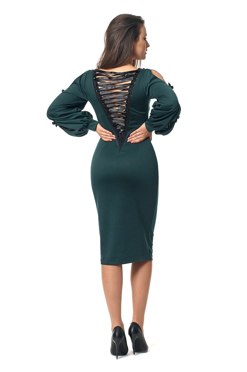 Модное женское платье Дорианна выполнено из трикотажа Lacosta высокого качества. Платье длинной миди, с длинным рукавом, с вырезом лодочка. Изюминку платью придает шнуровка на спине и рукав эпископа с разрезами. Такое платье можно смело одевать как и на работу, так и на мероприятие – Вы будите приковывать взгляды окружающих и чувствовать себя уверенно, комфортно и стильно. Размерный ряд: S (42-44), M (44-46), L (46-48), XL (50-52), XXL (54-56). Рост модели на фото 170 см, на модели размер М. Параметры смотрите по таблице размеров №2.