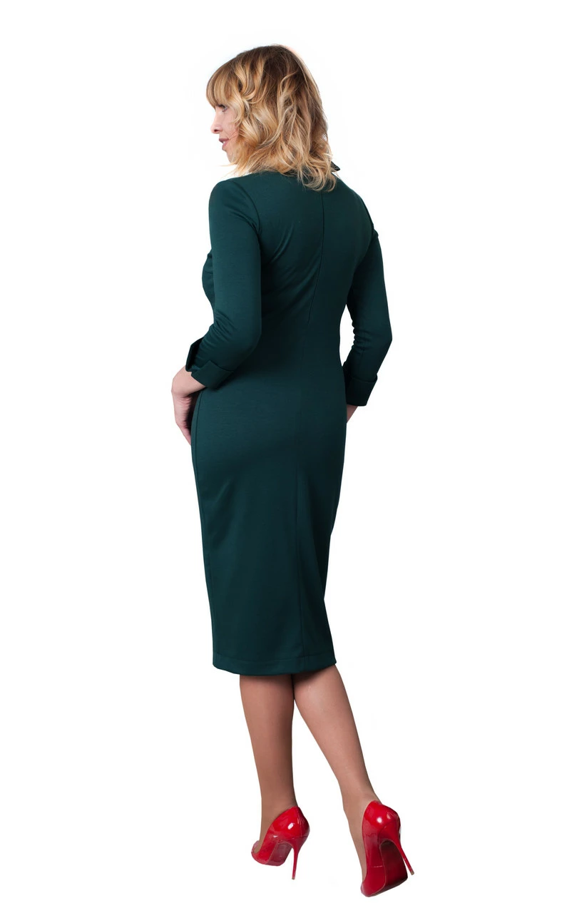 Роскошное платье «Luxury» приталенного силуэта, однотонное с воротничком и шикарным украшением из камней и метала под золото. Платье достойно украсит Вашу фигуру, сдержанная роскошь будет к лицу всем прекрасным леди.