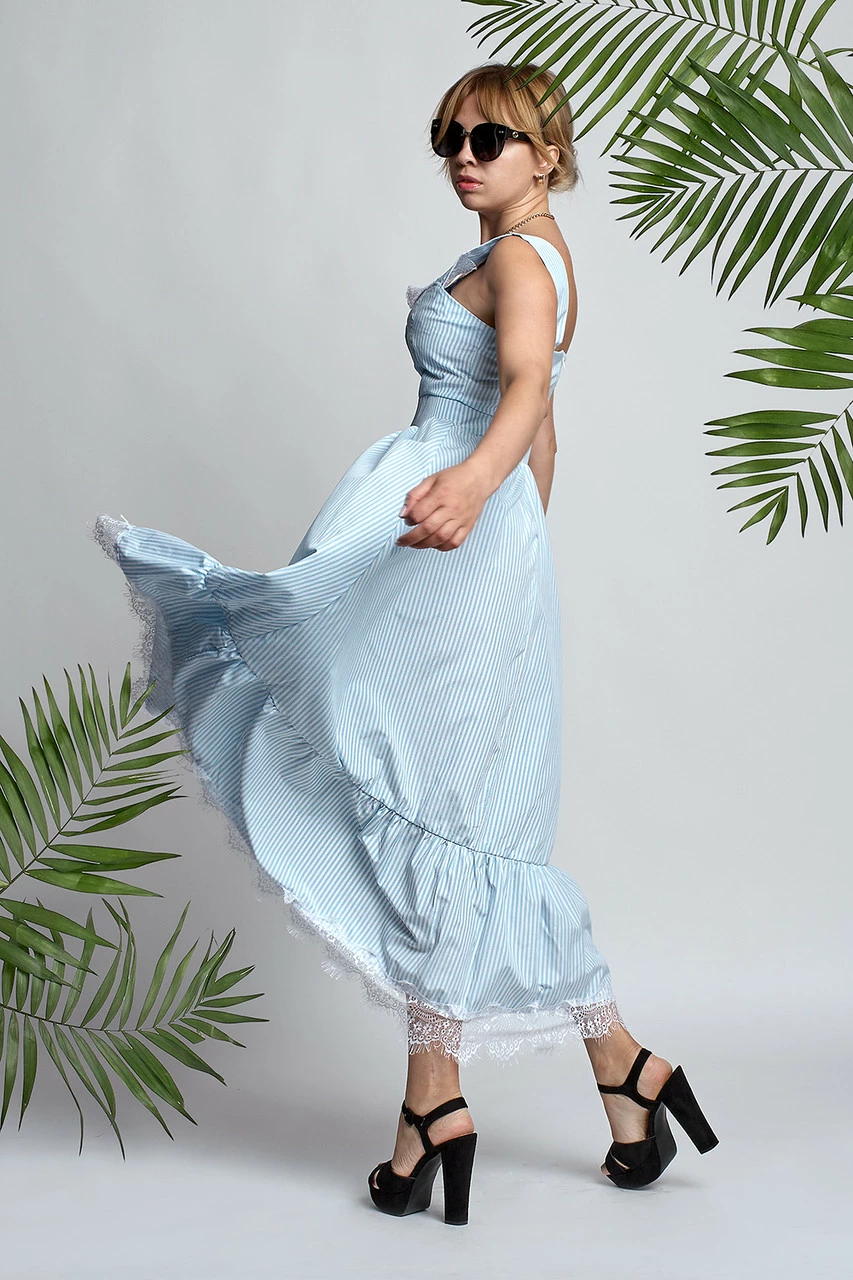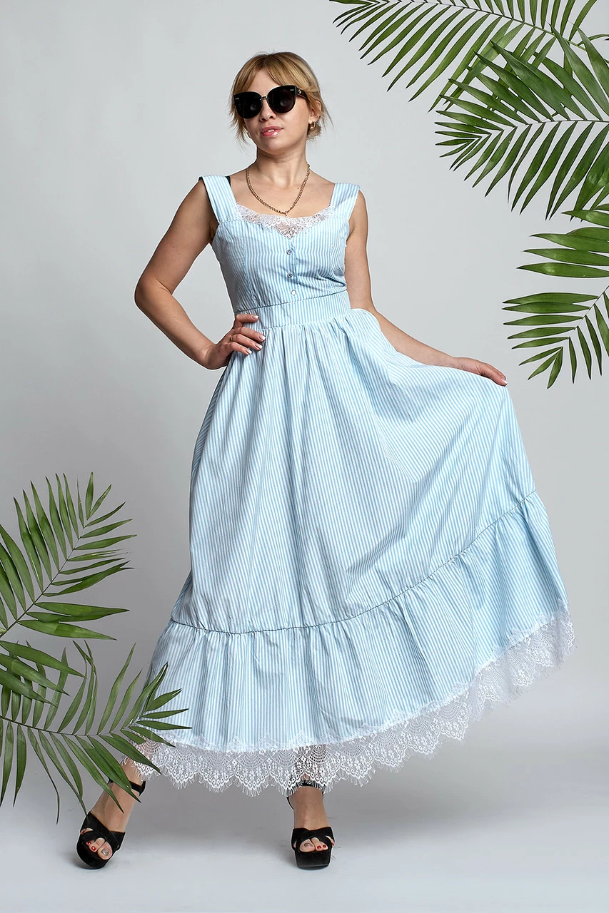 Платье Мальва выполнено из ткани коттон высокого качества. Платье длиной макси, на широких бретелях, украшено красивым кружевом. Платье очень женственное и красиво садится по фигуре. Такое платье подойдет для выхода в свет, прогулок. В нем Вы будите выглядеть очень женственно и модно.