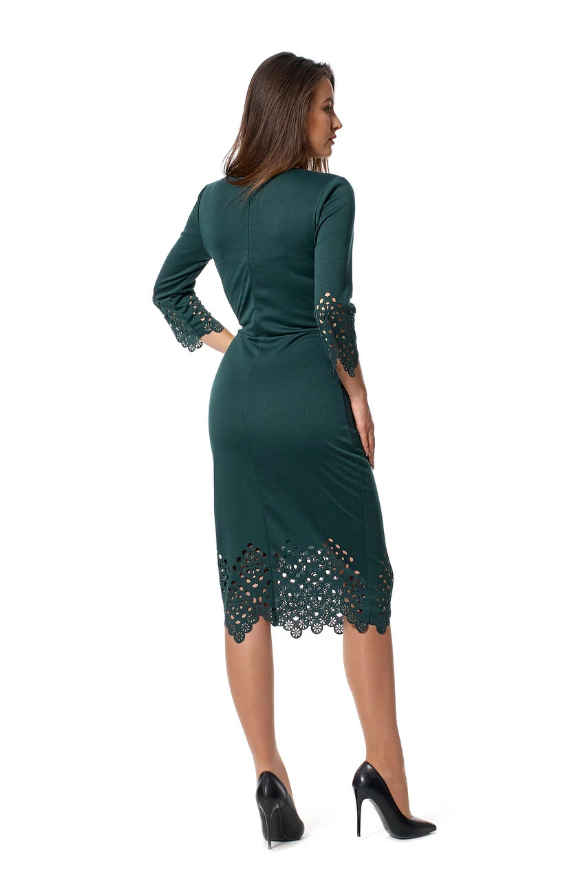 Изысканное платье Мерида выполнено из трикотажа лакоста высокого качества. Платье длины миди с рукавом ¾ и круглым вырезом, сзади застегивается на потайную молнию. Подол платья и рукава декорированы фантазийной перфорацией, которая придает изделию особой элегантности и шарма. Такое платье можно смело одеть как на работу, так и на праздник, в нем Вы будете выглядеть красиво и уверенно.