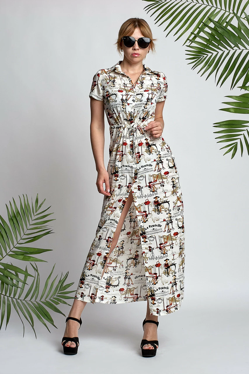 Платье Мерит выполнено из ткани штаель высокого качества. Платье длинной макси, с коротким рукавом и оригинальным принтом, застегивается на пуговички. Такое платья идеально подойдет для ежедневной носки прогулок и на работу, в нем Вы будите себя чувствовать удобно и комфортно.