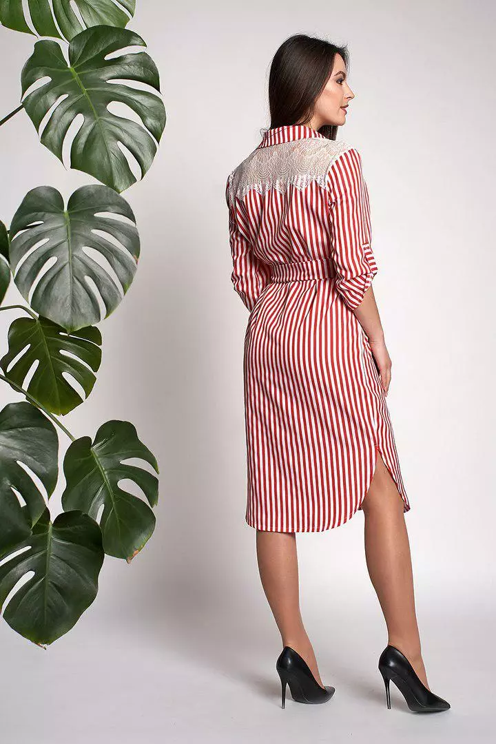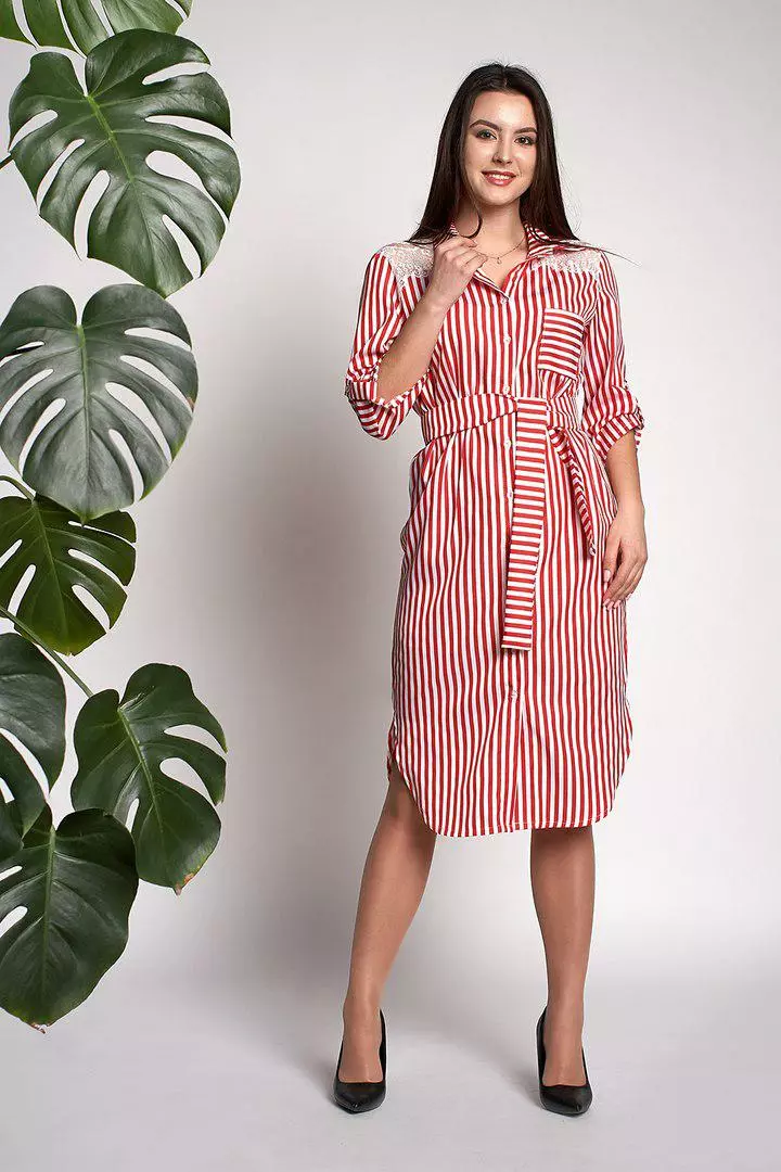 Модное женское платье-рубашка Моника выполнено из ткани котон высокого качества. Платье-рубашка длинной миди, рукава ¾ с хлястиком, застегивается на пуговицах, линию талии подчеркивает пояс который идет в комплекте. Изюминку придают гипюровые вставки на плечах. Платье-рубашку можно носить и самостоятельно, и в комплекте с джинсами, леггинсами, обтягивающими лосинами или плотными колготками. Хорошо сочетается такой наряд и с туфлями или босоножками на высоком каблуке, макасинами и слипонами.