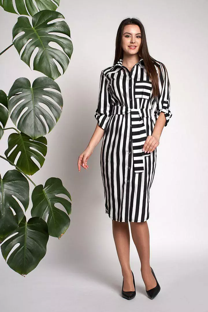 Модное женское платье-рубашка Натали выполнено из ткани котон высокого качества. Платье-рубашка длинной миди, рукава с манжетами ¾, застегивается на пуговицах, линию талии подчеркивает пояс который идет в комплекте. Платье-рубашку можно носить и самостоятельно, и в комплекте с джинсами, леггинсами, обтягивающими лосинами или плотными колготками. Хорошо сочетается такой наряд и с туфлями или босоножками на высоком каблуке, макасинами и слипонами.