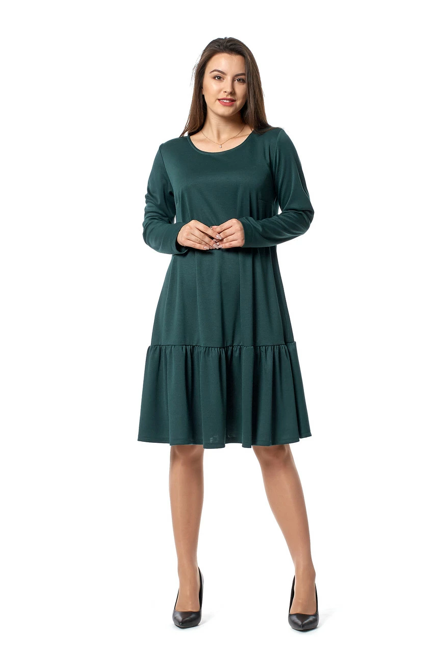 Женственное платье Паула выполнено из высококачественного трикотажа лакоста. Однотонное платье с круглым вырезом, длинным рукавом, без застёжки. От середины бедра пришита широкая юбка-волан, которая придаёт образу лёгкости и игривости, красиво развевается во время ходьбы и приковывает к себе мужские взгляды. Длина платья до середины колена, что позволяет одевать его не только на праздники, но и каждый день на работу в офис или встречи с друзьями. Мы советуем комбинировать платье с обувью на каблуке – это визуально вытянет ножки и придаст силуэту изящности.