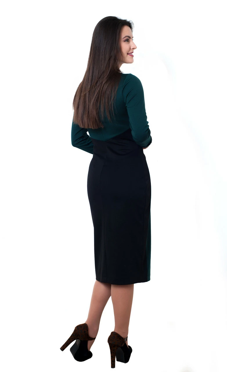 Красивое платье Сабрина выполнено в повседневном стиле из французского трикотажа высокого качества. Изделие прямого покроя, приталенного силуэта, с круглым вырезом и длинным рукавом. Скомбинировано из чёрной и цветной ткани, горловина и манжеты обшиты чёрной тканью. Разработанный дизайнерами крой и специальное сочетание цветов создаёт силуэт «песочные часы», благодаря чему изделие отлично смотрится на любой фигуре, скрывает недостатки и подчёркивает достоинства. В таком платье Вы будете выглядеть великолепно и уверенно.