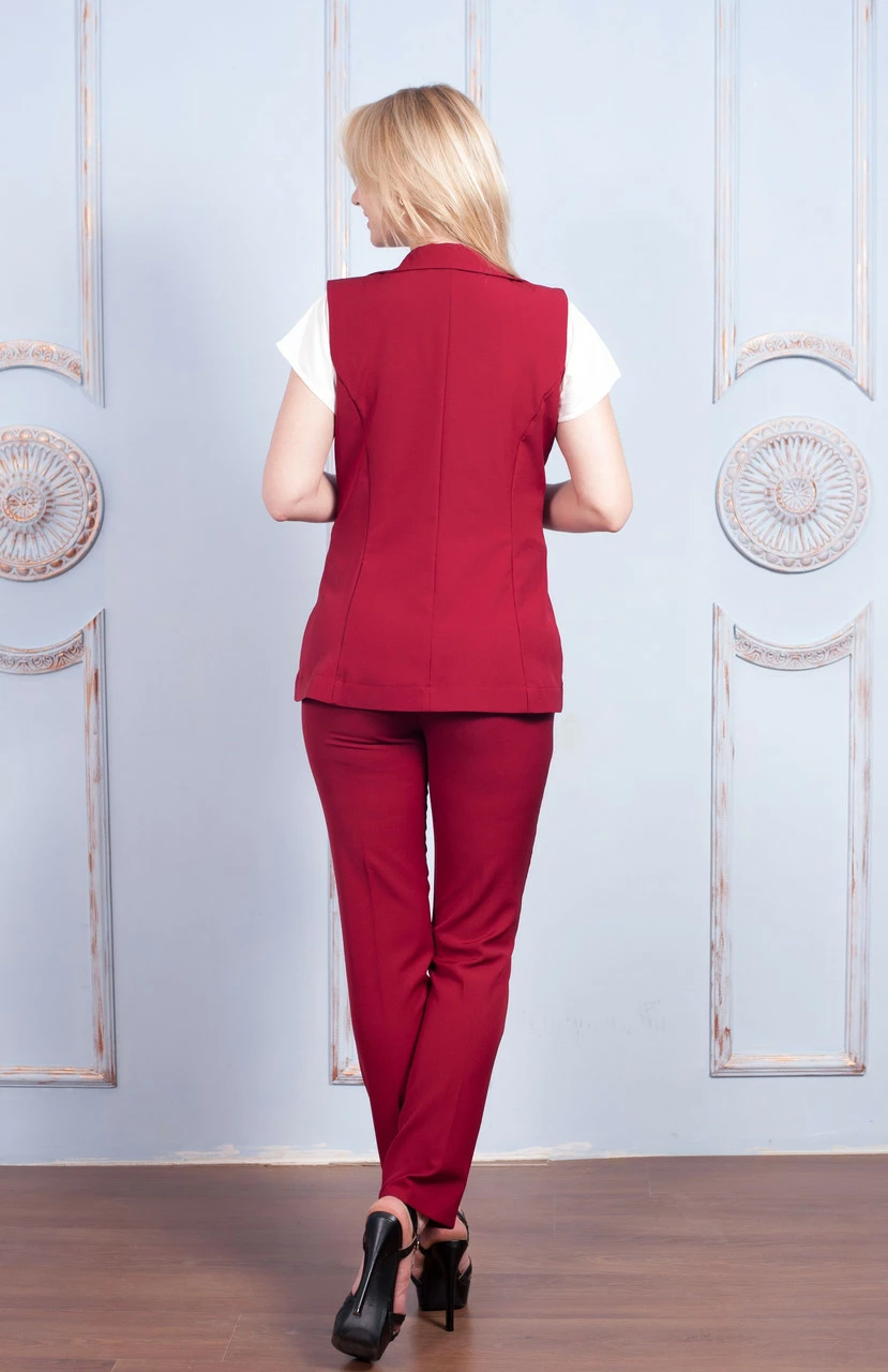 Модный костюм Сиэтл выполненный из легкой итальянской костюмной ткани. Состоит из жилета и укороченных брюк с высокой посадкой. Жилет приталенный, с глубоким V-образным вырезом, застегивается на три пуговицы. Костюм красиво лежит по фигуре, подчёркивает красоту зоны декольте, тонкую талию и округлую линию бедер.